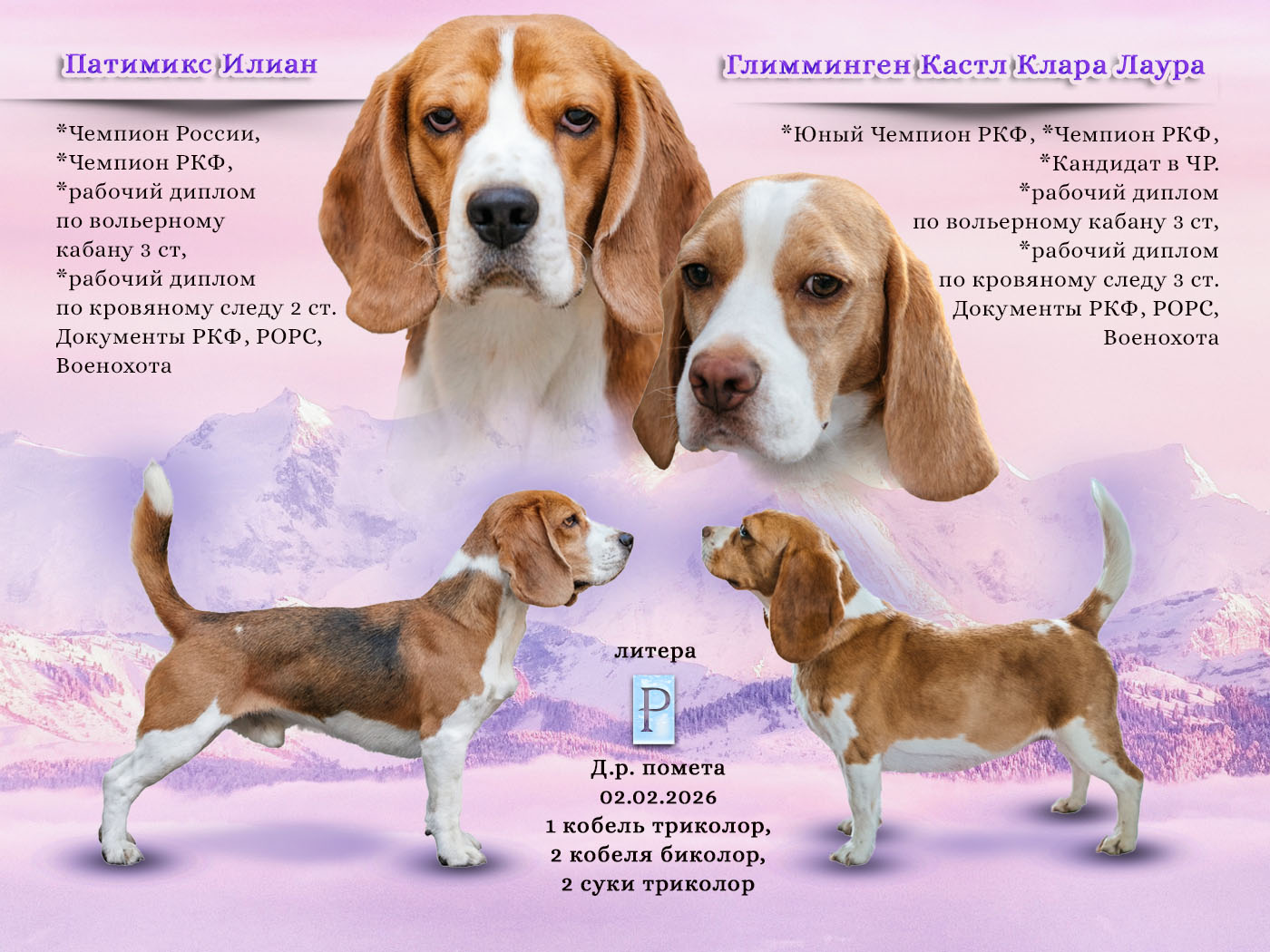 Представляю наш новый помет - литера "Р" , родились 02.02.2026 года от пары Патимикс Илиан и Глимминген Кастл Клара Лаура. На данный момент предлагаются к бронированию два кобеля -биколор.